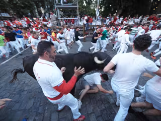 Así, M.M.C., de 22 años y de San Sebastián de los Reyes (Madrid), ha sido trasladado al centro hospitalario desde el tramo de Mercaderes con una herida por asta de toro en el abdomen, con pronóstico grave. También grave es la cornada de V.P.C. de 27 años, de Puçol (Valencia), evacuado desde la zona del Mercado. Sufre una herida por asta en la pierna derecha y ha ingresado en Traumatología. Un tercer corneado es F.S.E., de 31 años, de Villava, trasladado desde el Mercado y ya dado de alta.