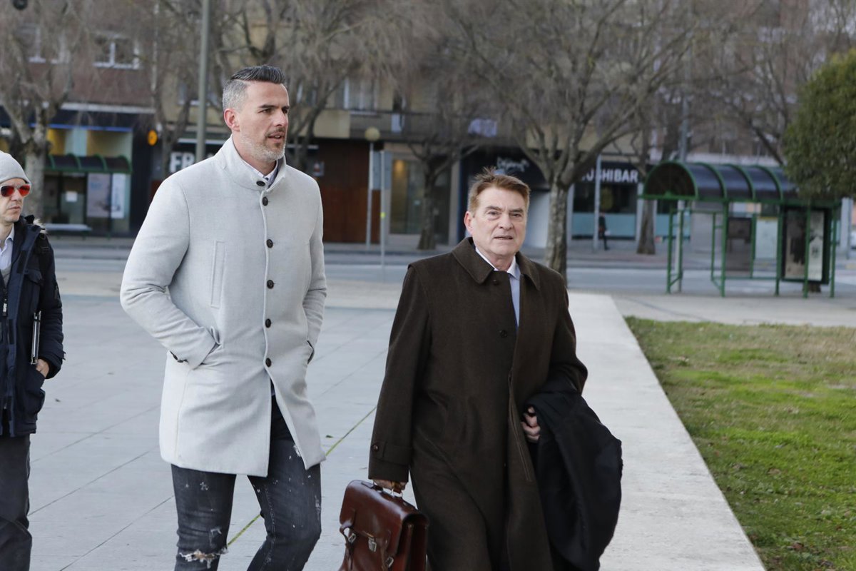 El por entonces jugador del Betis, Antonio Amaya (2d), a su llegada al Palacio de Justicia de Pamplona, donde comienza el juicio por supuestos amaños de partidos en la temporada 2013-2014, en Pamplona /Navarra, a 20 de enero de 2020. - David Domench - Europa Press - Archivo