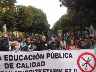 Al término de la marcha, los sindicalistas Jos Elizalde (UGT) y Amaya Zubieta (Stee-Eilas) han leído un comunicado en el que han señalado que las movilizaciones convocadas contra los recortes "están dando sus frutos" con "mejoras en los contratos para los contratados a tiempo parcial, se ha completado las plantillas de los centros públicas o se han conseguido mejoras también en las sustituciones".