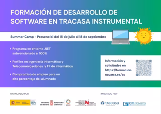 El Servicio Navarro de Empleo y Tracasa Instrumental, empresa pública del Gobierno de Navarra, han lanzado una nueva edición de su Summer camp, una acción formativa de desarrollo de software que en sus anteriores ediciones -este año será ya la quinta- ha alcanzado siempre unas altas tasas de inserción laboral, de alrededor del 80%. El curso se llevará a cabo entre el 15 de julio y el 18 de septiembre organizado por el Colegio de Graduados e Ingenieros Técnicos Industriales de Navarra (CITI Navarra).