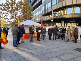 La cita, en la que se han podido ver banderas de España y alguna de Navarra, ha reunido a alrededor de medio centenar de personas. Entre ellas, representantes del PP -su secretaria general, Amelia Salanueva, y la edil Carmen Alba- y de UPN -el vicealcalde de Pamplona, Carlos Salvador-, y figuras como el político Jaime Ignacio del Burgo.