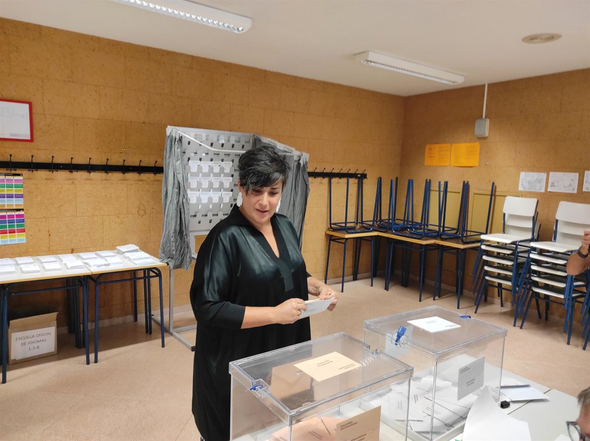 La cabeza de lista de Geroa Bai al Congreso de los Diputados, María Solana, vota en las elecciones generales del 23 de julio. - EUROPA PRESS