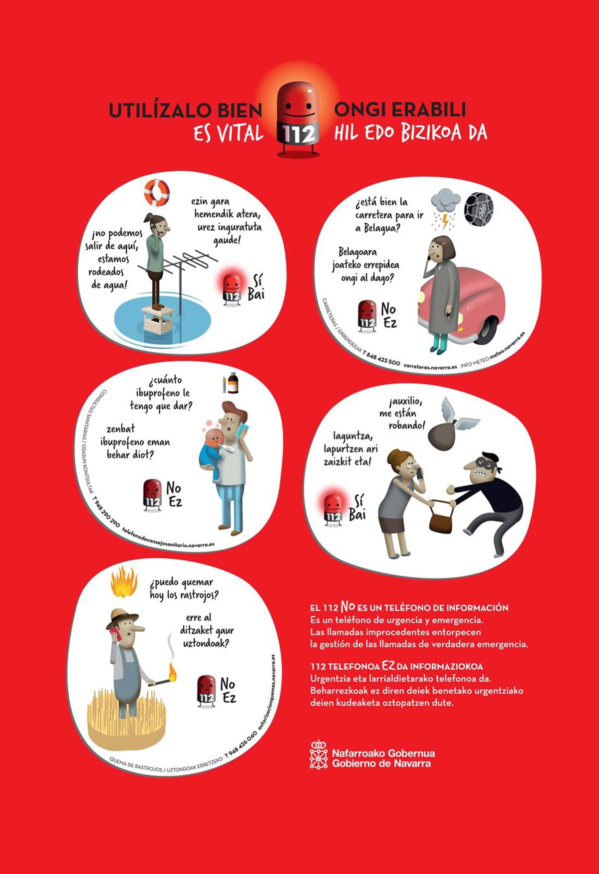 Además, con el objetivo de promover un uso correcto del teléfono de emergencia, se recuerda que existen otros teléfonos a los que hay que llamar en lugar de al 112 para solicitar información relativa a:
