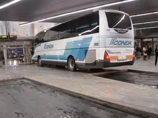 El autobús subió el bordillo y chocó contra un pilar y un banco en el que se encontraba la mujer sentada. Tras arrastrar el banco, el chofer consiguió detener el vehículo cuando ya había subido a la zona de espera y se encontraba a dos metros de distancia de la cristalera que separa el acceso de los viajeros a las dársenas.