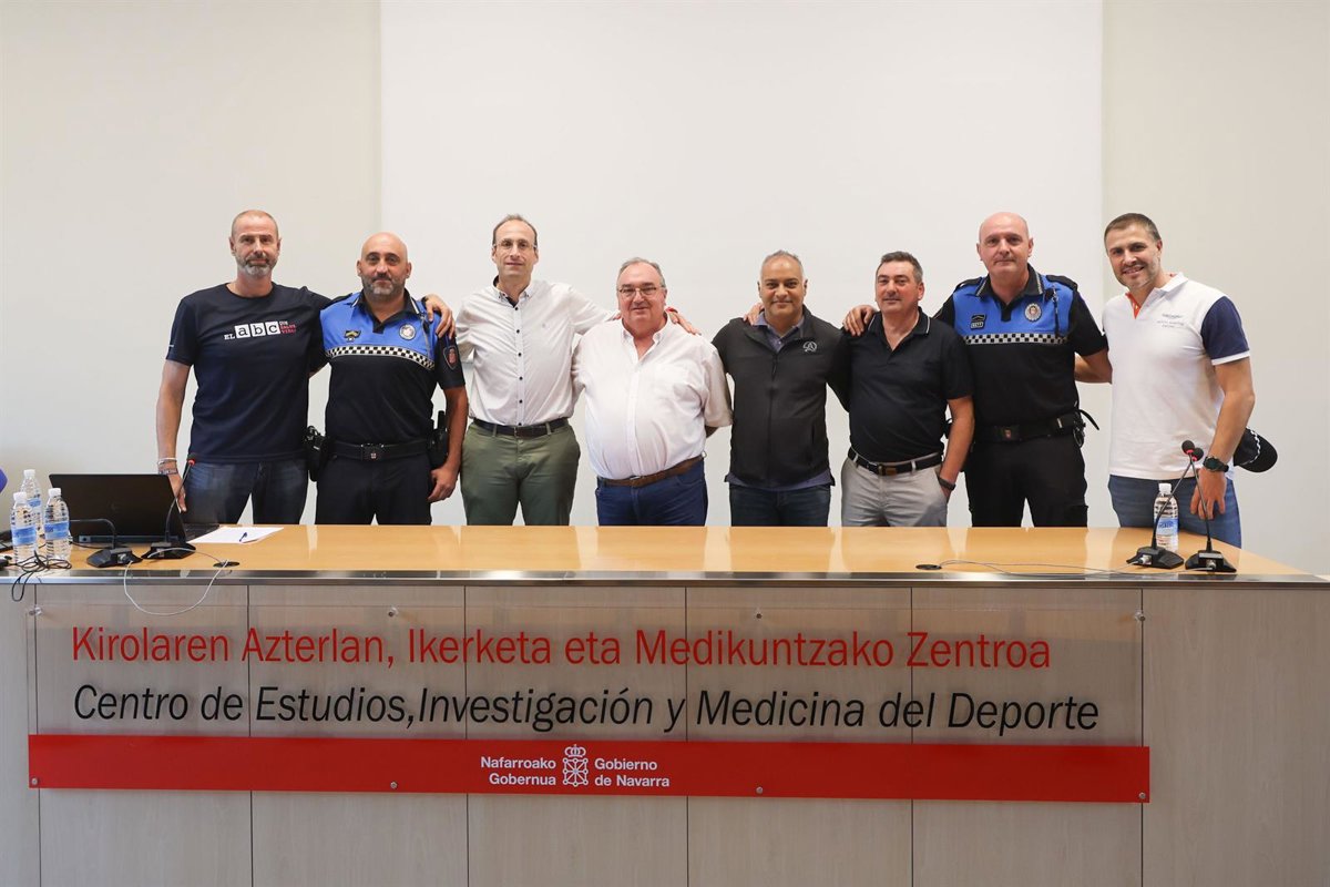 En el evento ha intervenido el director gerente del Instituto Navarro del Deporte, Jorge Aguirre, junto con el director del CEIMD, Diego Reyero, profesionales de protección civil y emergencias, y el primer superviviente de una parada cardíaca atendido por la policía municipal de Zizur Mayor.