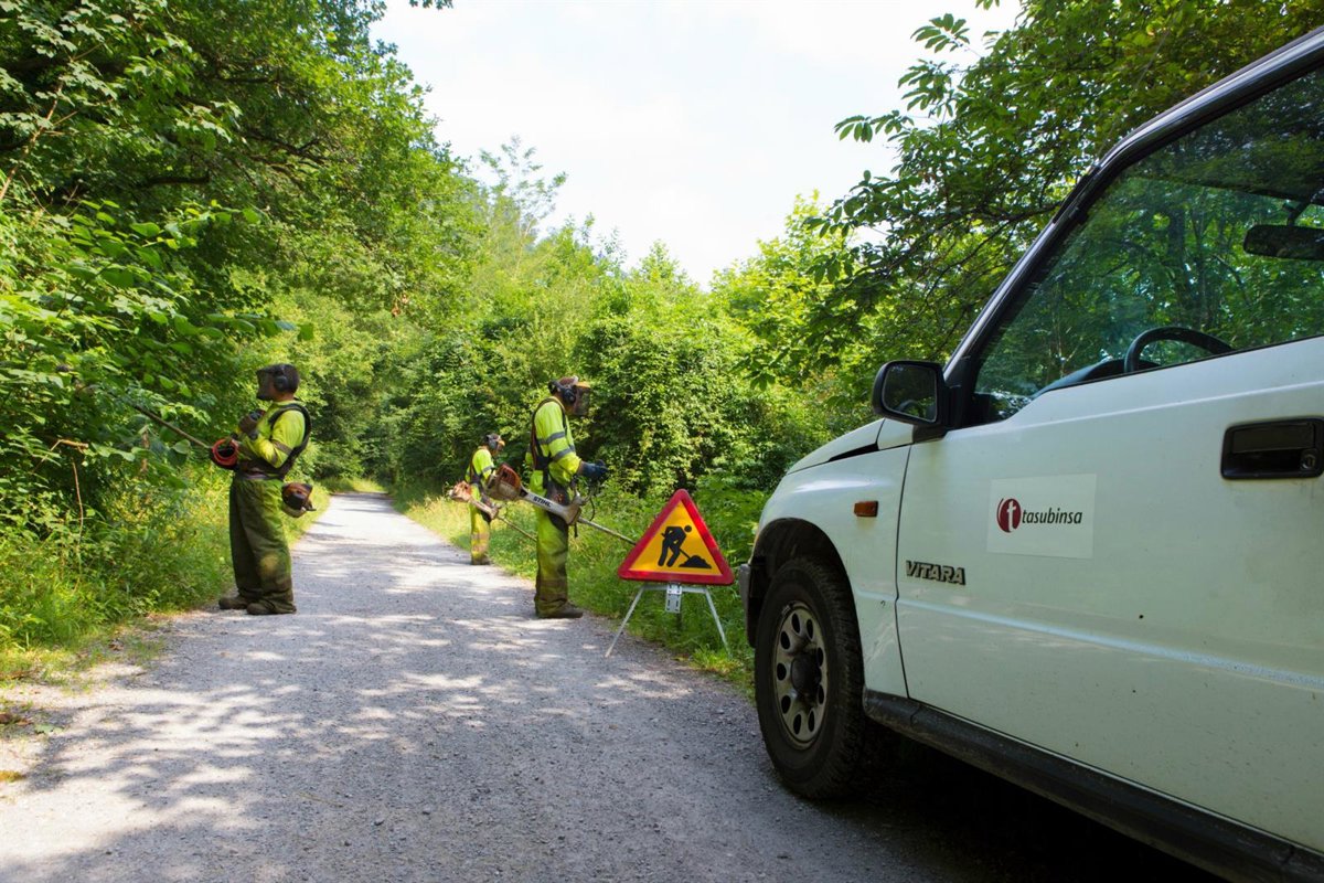 Tasubinsa se ha encargado, a lo largo de cuatro semanas durante el mes de junio y principios de julio, de los trabajos de desbroce de las lindes de la Vía Verde del Bidasoa, unos 22,5 kilómetros de camino desde Santesteban hasta la frontera.