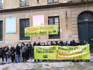 En un comunicado, LAB ha subrayado que "la gestión de espacios culturales públicos no se debería licitar con pliegos que no garanticen unas condiciones dignas a los trabajadores y trabajadoras de las empresas adjudicatarias". Ha criticado que "no tenemos calendario laboral, a duras penas sabemos con una semana de antelación el horario de trabajo, y este es orientativo ya que los horarios pueden alargarse en el mismo día según las necesidades del espectáculo o evento". A ello ha sumado que "los salarios son bajos y no se ajustan en absoluto al precio del mercado ni a las condiciones laborales que padecemos".