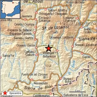 Ubicación del epicentro de terremoto registrado en Vidángoz - INSTITUTO GEOGRÁFICO NACIONAL