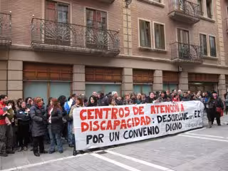 Más de un centenar de trabajadores de centros que atienden a personas con discapacidad mental o física severa y profunda, o grandes discapacidades, se han concentrado este martes ante el Tribunal Laboral, en Pamplona, para reclamar un convenio "digno" en el sector.