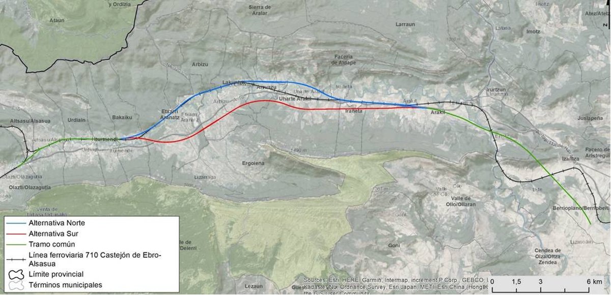 Las dos alternativas que se plantean en el Estudio Informativo discurren a través de la Comunidad Foral de Navarra, atravesando a su paso los términos municipales de Olazagutía, Alsasua, Urdiain, Iturmendi, Bakaiku, Etxarri Aranatz, Arbizu, Lakuntza, Arruazu, Uharte Arakil, Irañeta, Arakil e Iza.