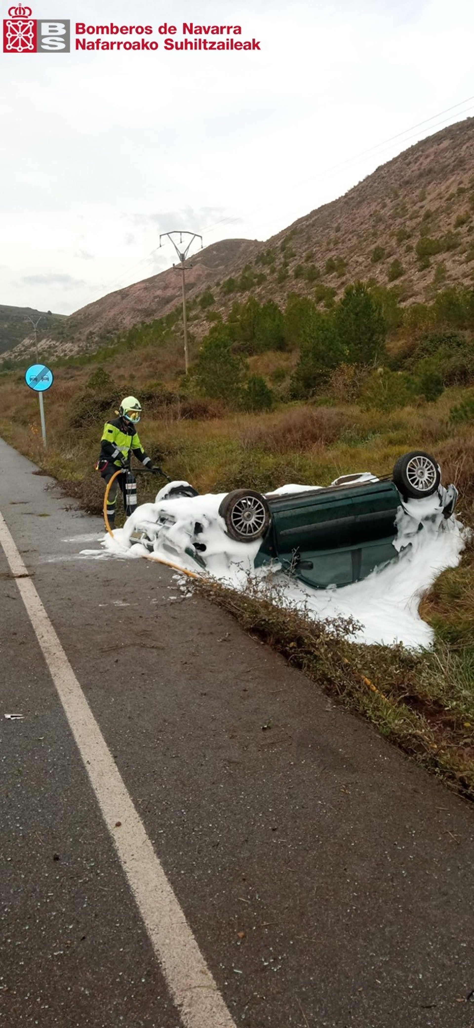 Una persona ha sido trasladada este miércoles por la tarde al Hospital García Orcoyen de Estella tras salirse de la vía y volcar en la NA-134, en Lodosa.