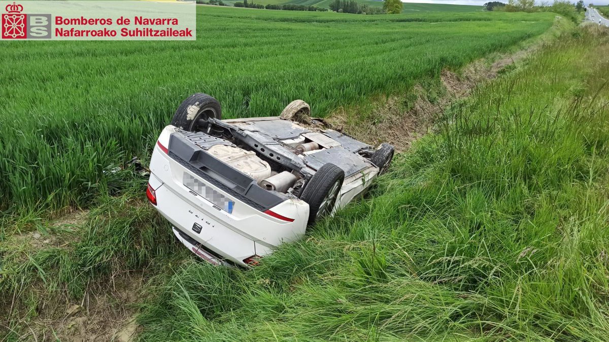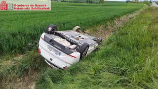 Una persona ha sido trasladada este lunes al Hospital Universitario de Navarra tras salirse de la vía y volcar en la carretera NA-150, en Urroz-Villa.