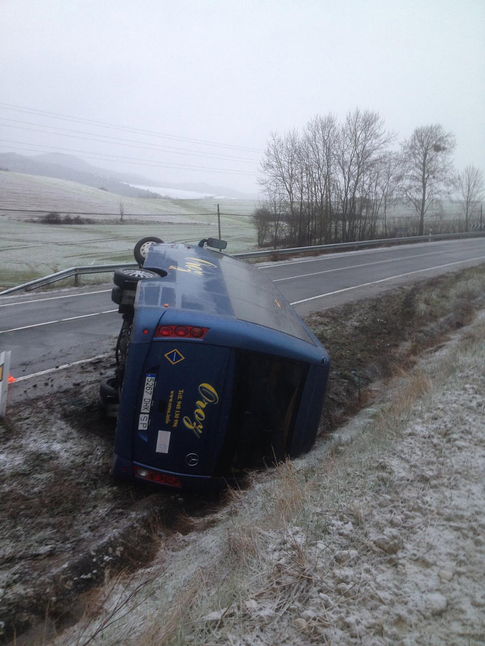 Tres estudiantes de Educación Secundaria han resultado heridas leves al volcar el microbús que les transportaba a institutos de la Comarca de Pamplona. El conductor del vehículo ha perdido el control del mismo tras patinar a causa de la nieve en la NA-150 en Ibiricu a las 7.20 horas.