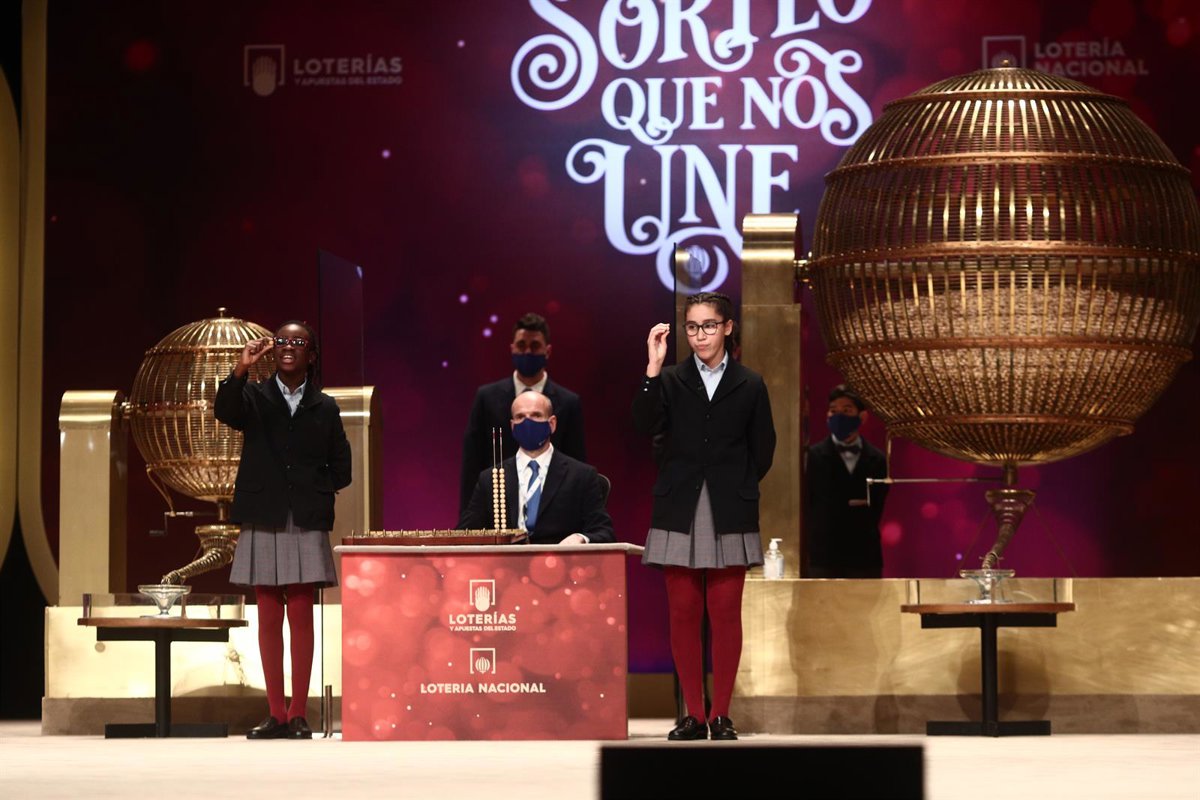 Dos de las niñas de la residencia de San Ildefonso, cantan uno de los quintos premios de la Lotería de Navidad, durante la celebración del Sorteo Extraordinario de la Lotería de Navidad 2020 en el Teatro Real de Madrid (España), a 22 de diciembre de 202 - Eduardo Parra - Europa Press