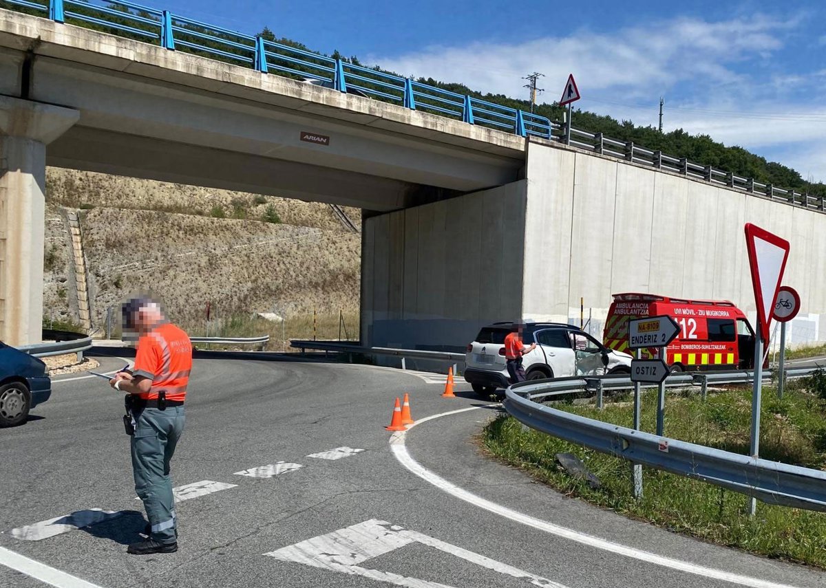 Tres personas han resultado heridas de diversa consideración la tarde del domingo tras sufrir una colisión los dos vehículos en los que circulaban en la carretera NA-411 a la altura del punto kilométrico 28,2, en el término municipal de Ostiz (Odieta).