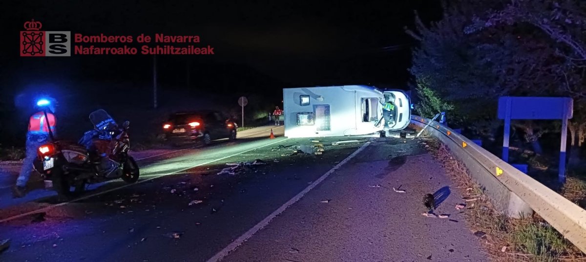 Tres personas resultaron heridas leves la noche del sábado tras colisionar una autocaravana y un coche en la carretera N-240-A en Sarasate (Iza). - BOMBEROS DE NAVARRA