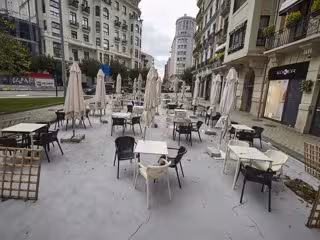 Terraza cerrada y vacía el día en el que han entrado en vigor las nuevas restricciones en Navarra para tratar de reducir los casos de Covid-19, en Pamplona - Eduardo Sanz - Europa Press