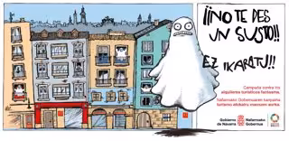 La campaña que este miércoles se presenta es una continuación de la que la Dirección General de Turismo ya desplegó el año pasado. Bajo el eslogan '¡No te des un susto! / Ez ikaratu!', la campaña pretende informar del deber de los titulares de este tipo de alojamientos de darlos de alta en el Registro de Turismo de Navarra, haciendo, asimismo, hincapié en los beneficios que se derivan de una actividad turística ordenada, ha informado el Ejecutivo en una nota.