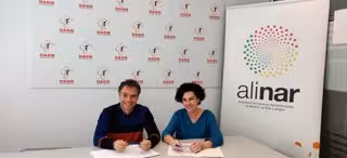 Iñaki Mendióroz y Cristina Lecumberri en la firma del convenio entre UAGN y Alinar - UAGN