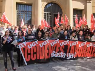 Delegados de UGT y CCOO de Navarra han secundado este jueves en Pamplona sendas concentraciones con motivo del Día Internacional de la Salud Laboral, una jornada en la que han criticado "el aumento de la siniestralidad laboral" en la Comunidad foral y han pedido "más medidas de prevención", así como "controles rigurosos".