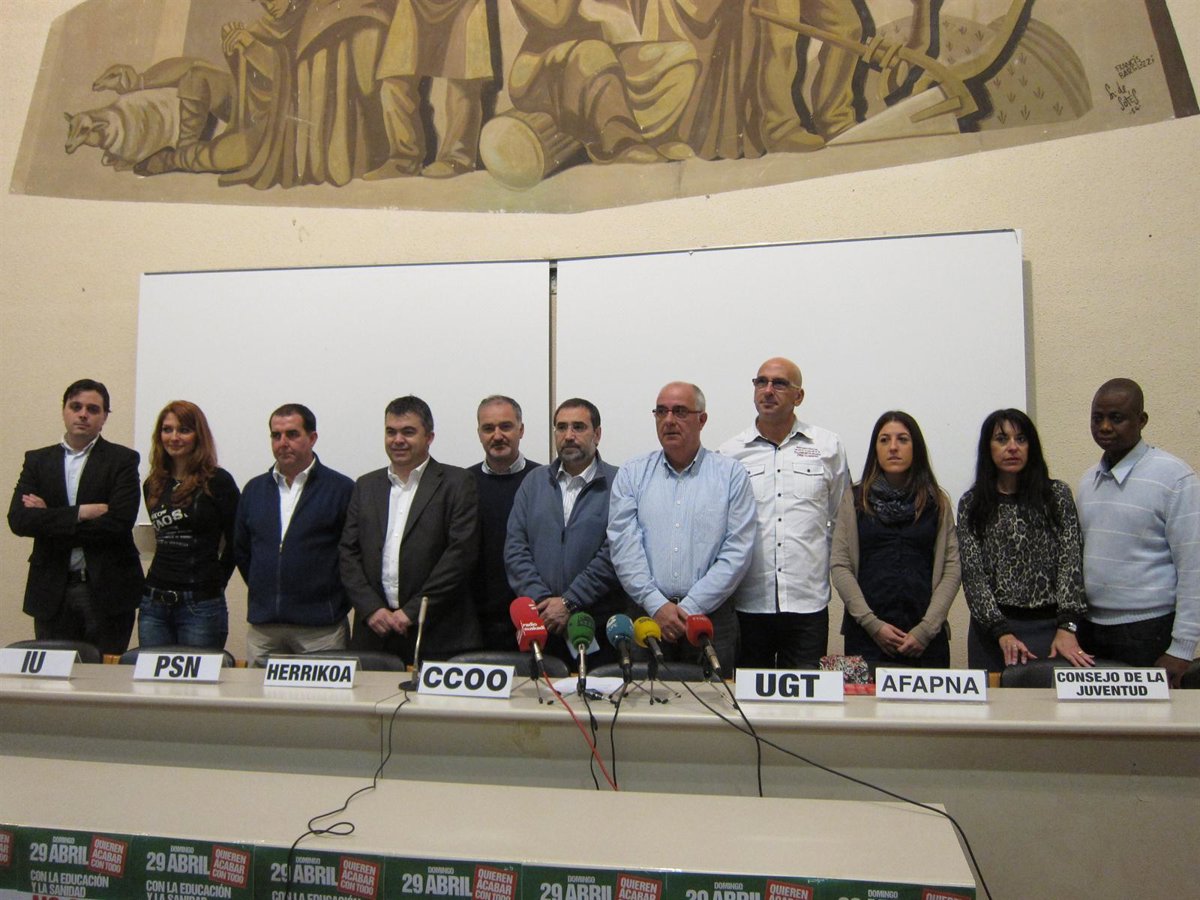 Los sindicatos UGT y CCOO han convocado manifestaciones en Pamplona y Tudela este domingo para expresar su rechazo a los recortes anunciados por el Gobierno central en materia educativa y sanitaria.