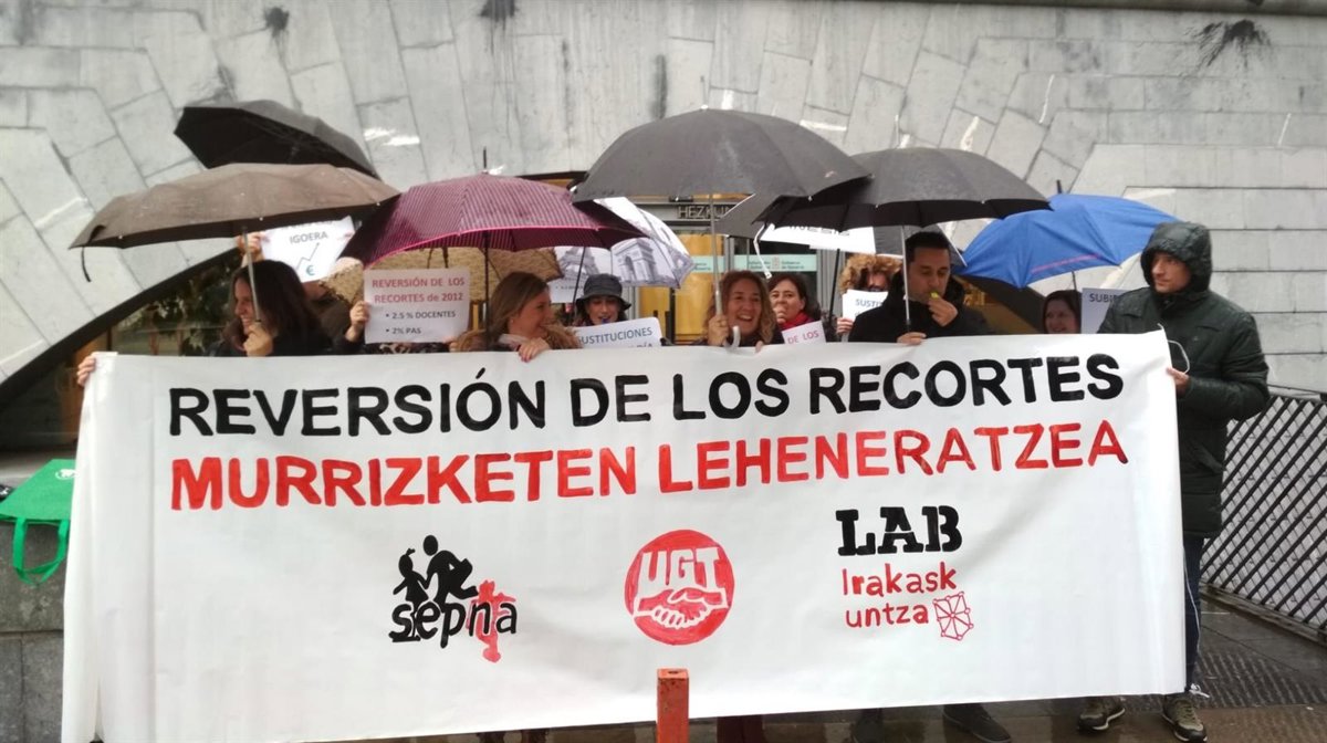 Asimismo, UGT, LAB y SEPNA han pedido "la reversión de los recortes salariales sufridos en 2012 (2,5% para el personal docente y 2% para el PAS)" y las "sustituciones del personal docente desde el primer día en bajas superiores a diez días lectivos".