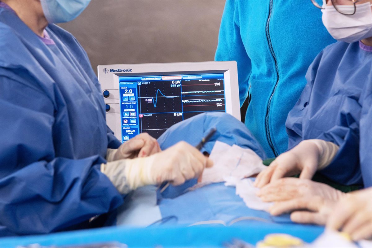 La utilización de la monitorización continua del nervio laríngeo recurrente durante las intervenciones de tiroides que se realizan en el Hospital Universitario de Navarra (HUN) ha disminuido las lesiones permanentes de ese nervio al 1,3%. La lesión de este nervio es una de las complicaciones más temidas en esta clase de cirugías por la posible afectación, temporal o permanente, de la voz o de la respiración.