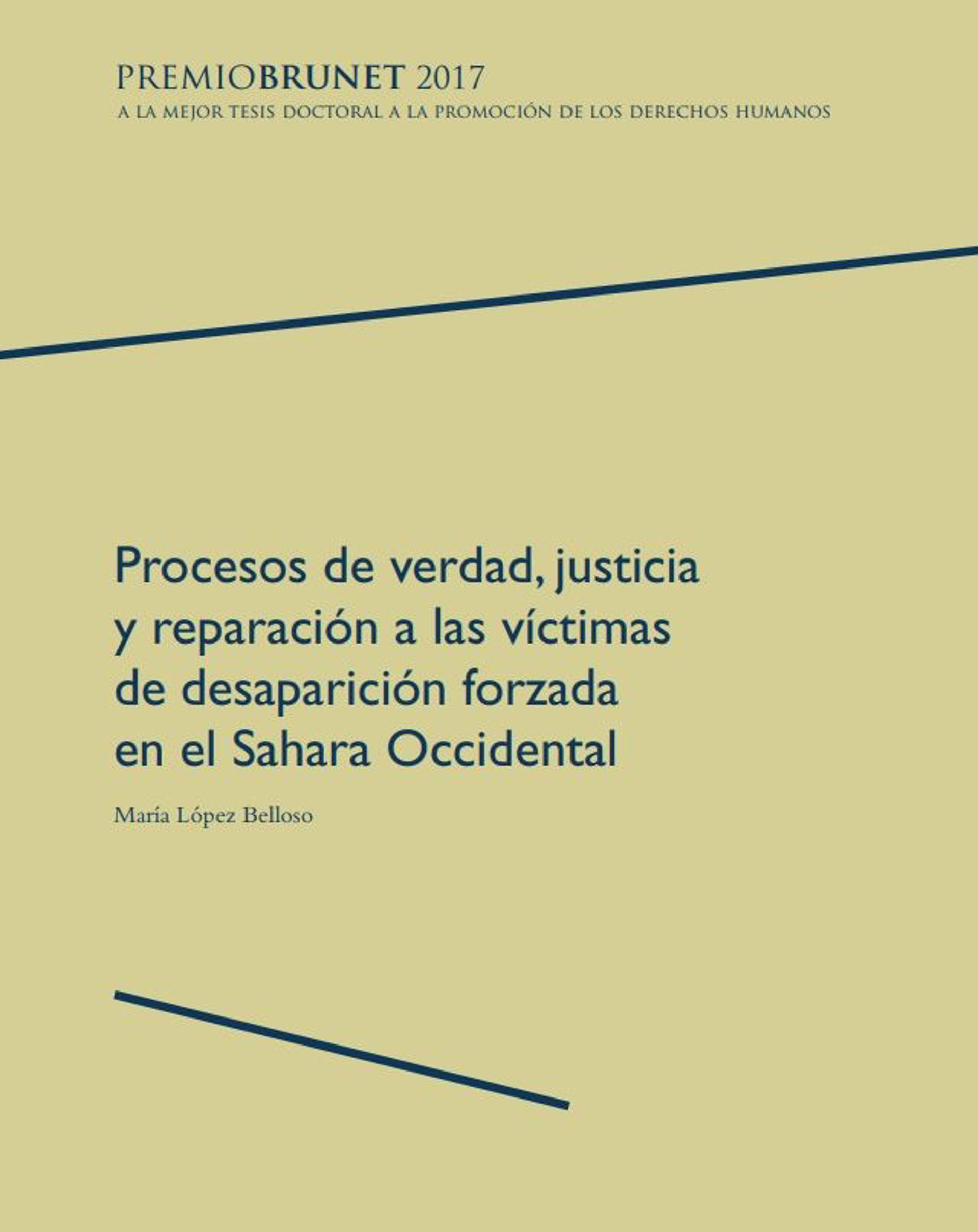 La Universidad Pública de Navarra (UPNA), a través de su Servicio de Publicaciones, acaba de editar la tesis ganadora del II Premio Tesis Doctorales Jaime Brunet 2017 bajo el título 'Procesos de verdad, justicia y reparación a las víctimas de desaparición forzada en el Sahara Occidental', que está disponible en edición en papel, en el repositorio institucional Academica-e y en los formatos e-pub y pdf. La autora es María López Belloso.