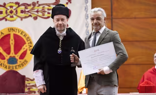 Tras el desfile de la comitiva académica, al frente de la cual se ha situado el profesor Xabier Iriarte Goñi, se ha producido a la entrega del premio Alumni Distinguido al economista experto en gestión de deuda pública Aitor Erce Domínguez. A continuación, Roberto San Martín Sancho, responsable del Centro de Desarrollo Global de la tecnología bomba de calor de la planta de BSH en el polígono de Esquíroz y uno de los impulsores del Grado Dual de Ingeniería Térmica de la UPNA, ha recogido el premio a la Entidad Distinguida.
