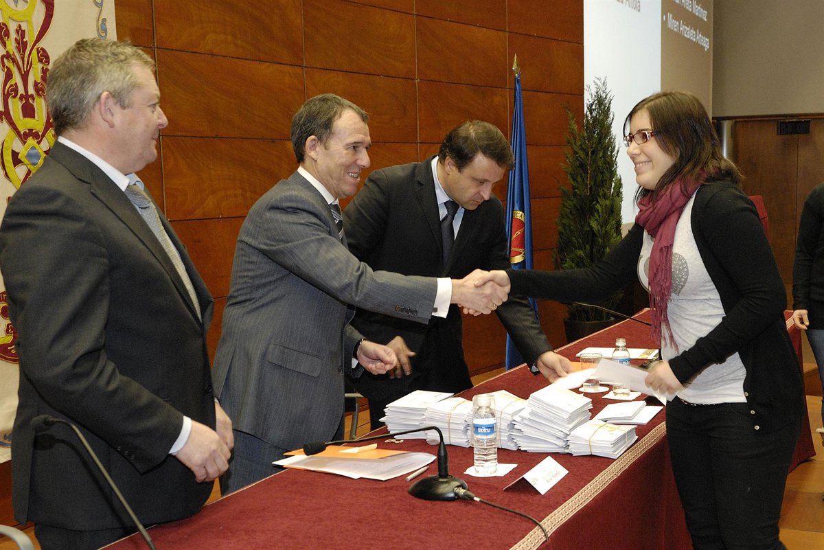 En el acto, los estudiantes que participan en los diferentes programas de movilidad han recibido las becas de Caja Rural de intercambio con universidades. El presidente de Caja Rural de Navarra, José Luis Barriendo, les ha hecho entrega de los cheques, que difieren en cuantía según sean becas para quienes están todo el curso académico en el extranjero o para quienes han permanecido fuera un semestre.