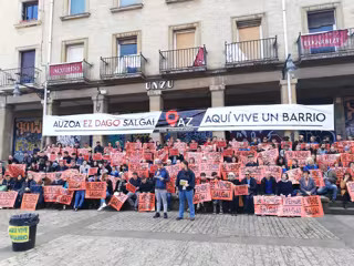 Previamente, han leído, en castellano y euskera, un comunicado en el que critican que la proporción de bares en el barro es "mucho más alta que el resto de la ciudad" y han lamentado que el acceso a la vivienda "es imposible para muchas personas" que "tienen que marcharse". Esto es así porque "más de la mitad de todos los apartamentos turísticos que hay en Pamplona" están en el Casco Viejo, zona donde "no llegamos a ser el 6% de la población".