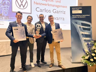 Los galardones reconocen anualmente los mejores desempeños manufactureros de cualquier sector industrial en Europa. El director de Ingeniería de Planificación de Volkswagen Navarra, David García, recogió el premio este jueves, en Berlín, acompañado por David Fernández (Planificación Logística), Carlos Jiménez (IT) y Carlos Gárriz (Planificación de Chapistería).