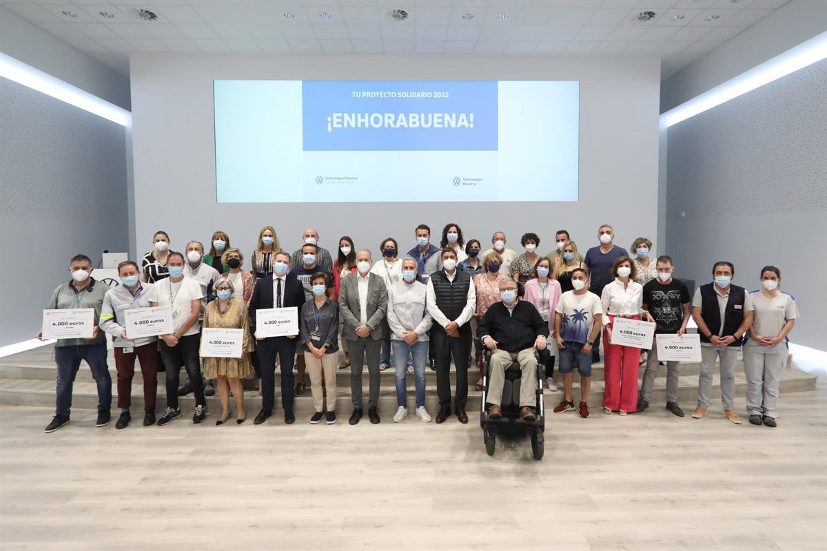 'Tu Proyecto Solidario' es una iniciativa de responsabilidad social corporativa de Volkswagen Navarra, por la que la empresa automovilística se compromete a aportar cada año una cantidad de dinero a los proyectos más votados por sus trabajadores, la misma que entrega también el comité de empresa. En esta edición, empresa y representación social han aportado 22.000 euros cada uno. Los proyectos sometidos a votación son a su vez presentados por empleados de la fábrica que actúan como padrinos de uno de los citados programas que deben cumplir con el requisito de estar impulsados por una entidad de titularidad navarra y llevarse a acabo en la Comunidad foral, ha informado la compañía en una nota.