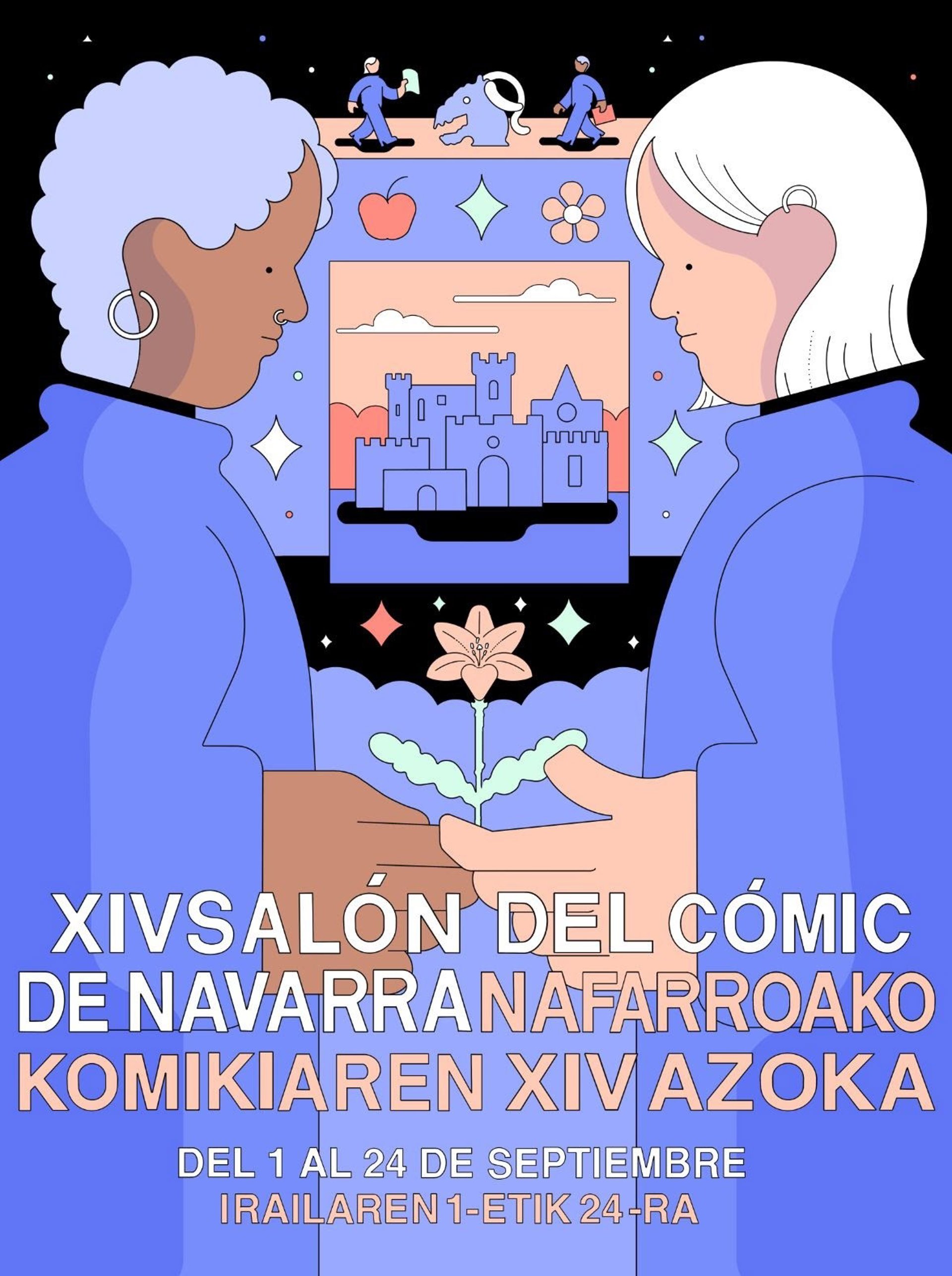 Como explica la autora, "siguiendo la estela que dejaron, el cartel está inspirado en las leyendas y mitos que forman parte del folklore de la región de Navarra y su amplio patrimonio arquitectónico de castillos y fortalezas". Y añade, además, que el diseño busca representar el cómic "como intercambio de ideas y construcción de pensamiento que ayuda a plasmar identidades diversas".