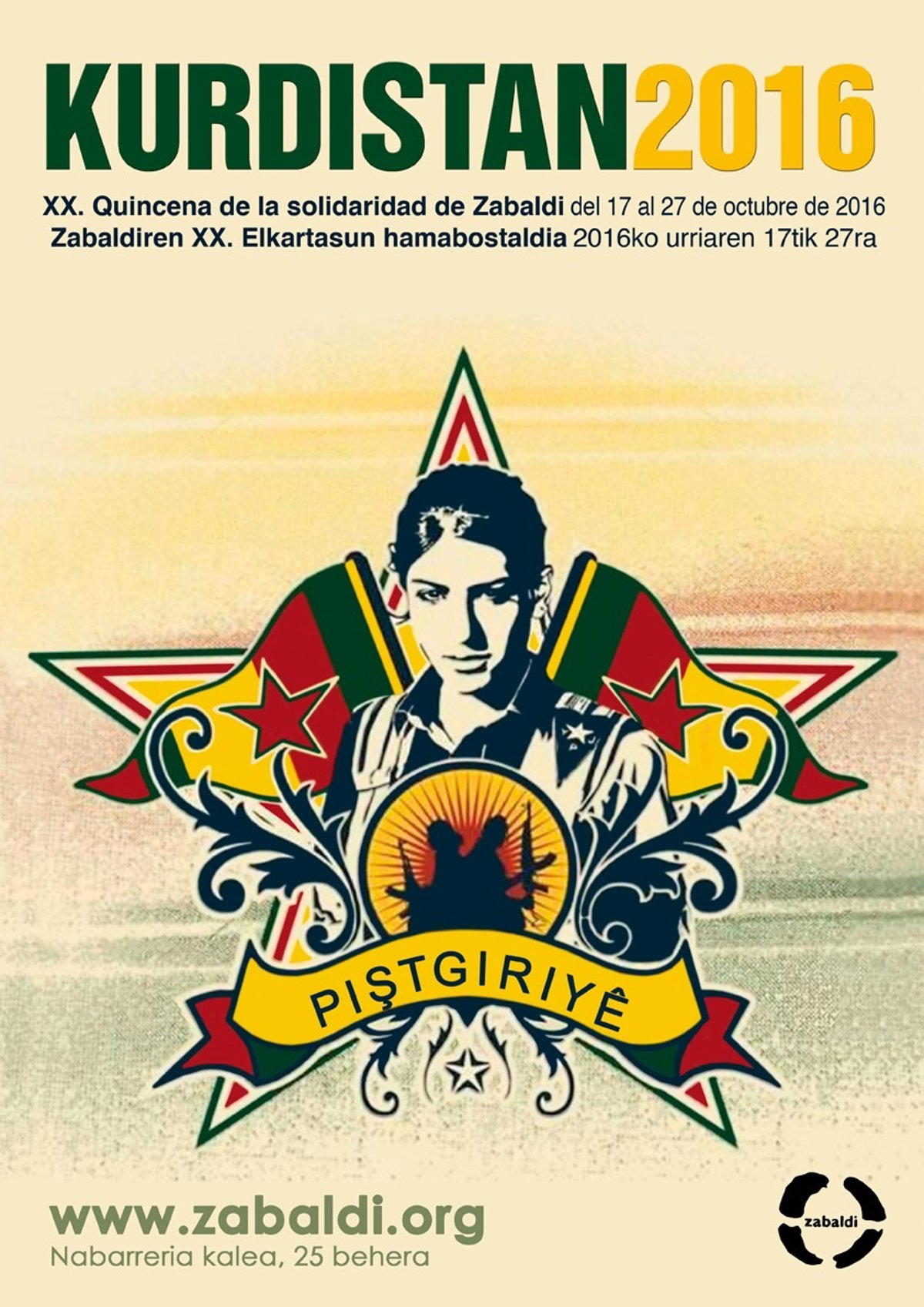 El centro social Zabaldi de Pamplona organizará entre el 17 y el 27 de octubre la XX Quincena de la Solidaridad que, en esta edición, ha dedicado al Kurdistán.