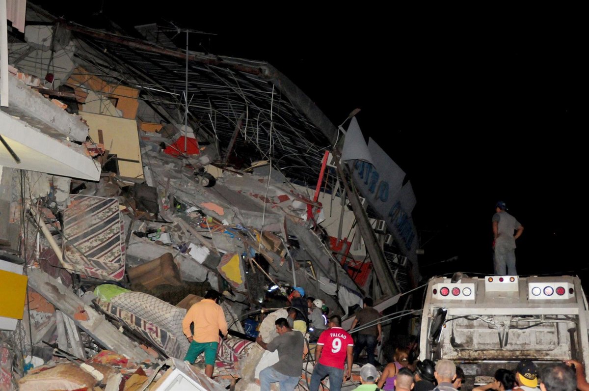 Un total de 77 muertos y 558 heridos es el balance de un terremoto de 7,8 grados en la escala de Richter registrado la tarde del sábado en la costa norte de Ecuador, y al que han seguido más de cincuenta réplicas.