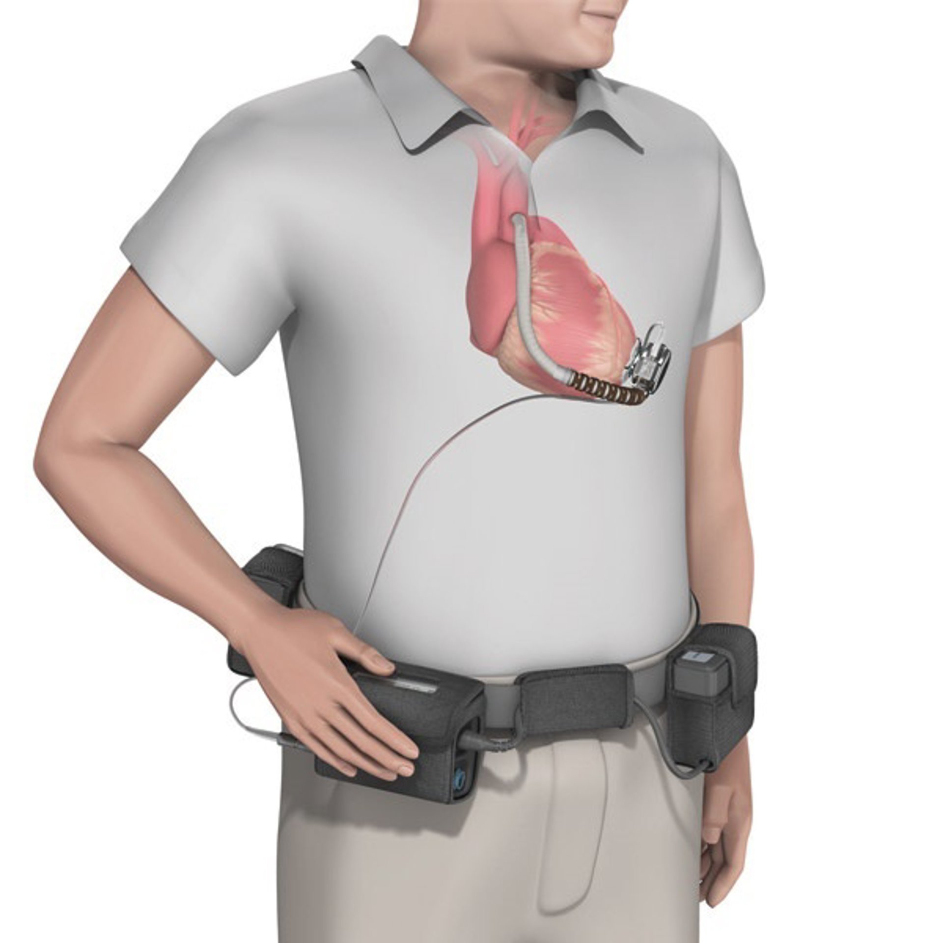 La bomba de flujo continuo de este dispositivo funciona gracias a un pequeño 'ordenador' externo que el paciente lleva consigo, conectados entre sí mediante un pequeño cable de unos 40 centímetros que sale fuera del cuerpo por debajo del ombligo.