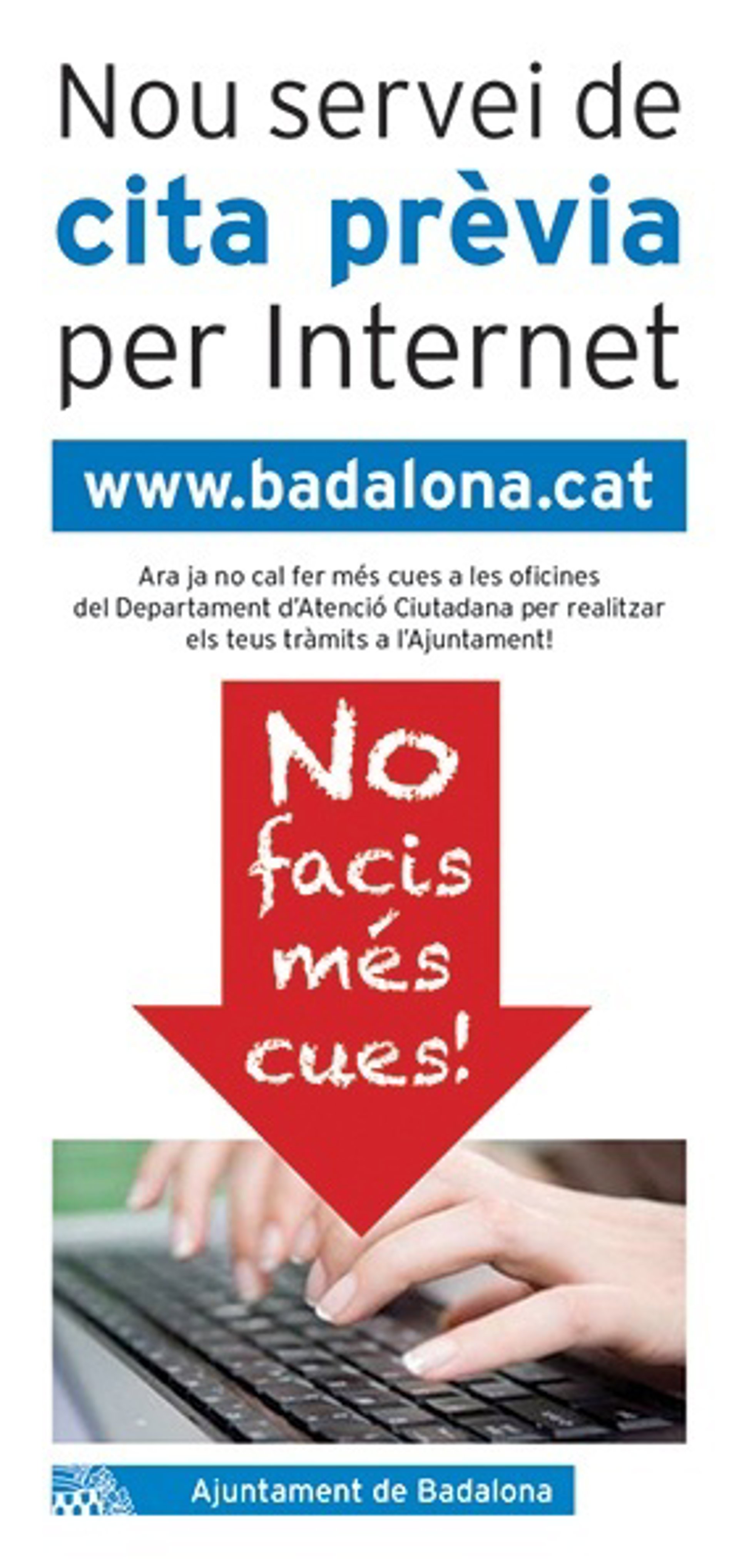 El Ayuntamiento de Badalona ha puesto este viernes en marcha el nuevo servicio de cita previa que permite pedir hora por Internet para realizar trámites administrativos en las oficinas municipales, con lo que quiere evitar al ciudadano las colas y agilizar la espera.