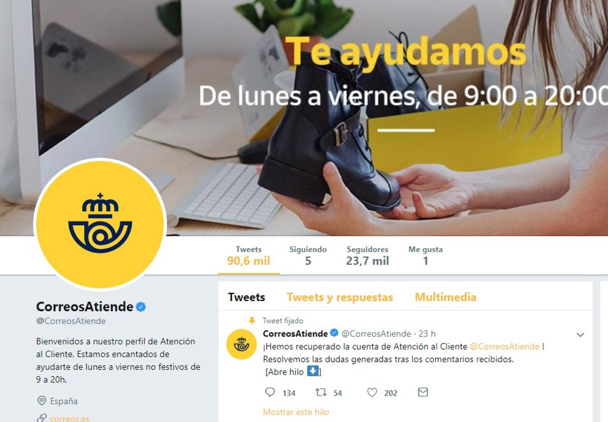 Correos ha recuperado el control de su cuenta de atención al cliente en Twitter, @CorreosAtiende, que esta semana ha sido víctima de un hackeo, y ha conseguido restablecer su dirección de cuenta original después de que el atacante la modificase.