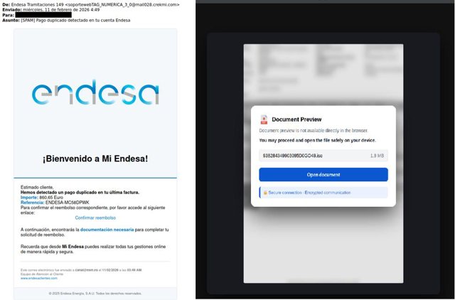 Como explican desde la firma de seguridad ESET, la nueva campaña envía correos electrónicos suplantando a Endesa en los que se comunica a las víctimas algún problema relacionado con sus datos personales o formas de pago.