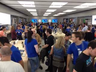 La nueva tienda de la manzana en el Centro Comercial Puerto Venecia de Zaragoza cuenta con una plantilla de 70 empleados perfectamente formados para orientar y enseñar a los ávidos clientes de Apple. A pesar de este elevado número de empleados, apenas han dado abasto este jueves para atender y animar a los nuevos clientes que hacían cola.