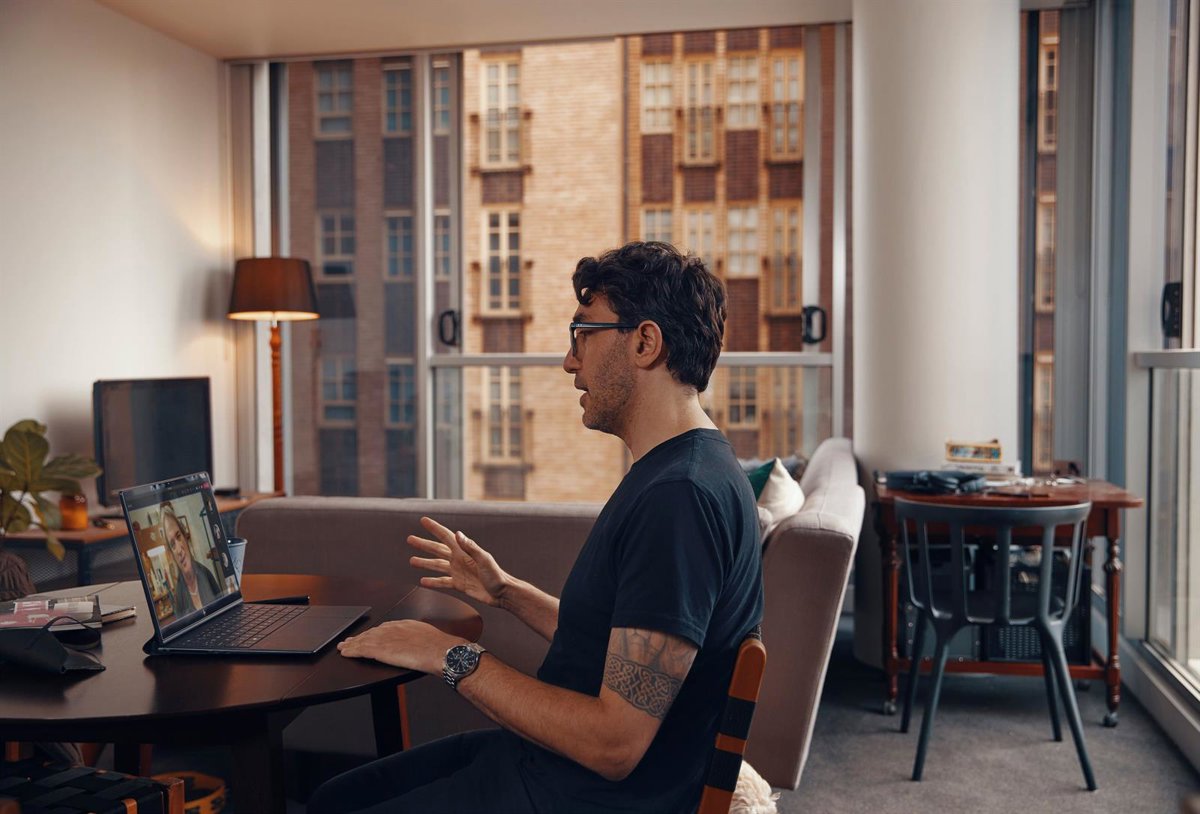 Persona manteniendo una reunión digital en su ordenador portátil - HP
