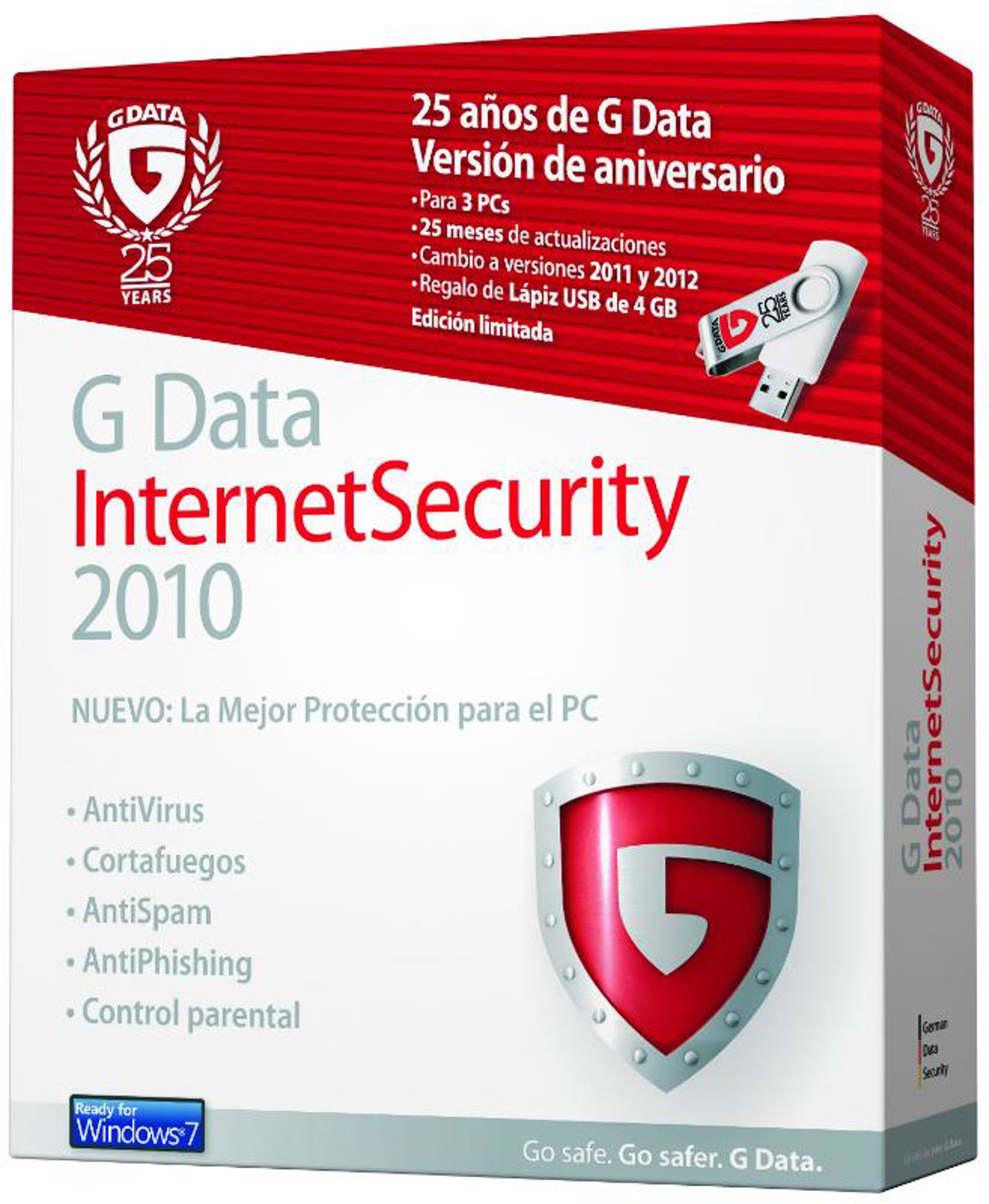 La Edición 25 Aniversario del producto más reconocido del fabricante alemán incluye antivirus, cortafuegos, antispam, antiphising y control parental. Además, la licencia es válida para 3PCs durante 25 meses con asistencia técnica en español y a coste de llamada local y se vende con una memoria USB de 4GB de regalo.