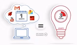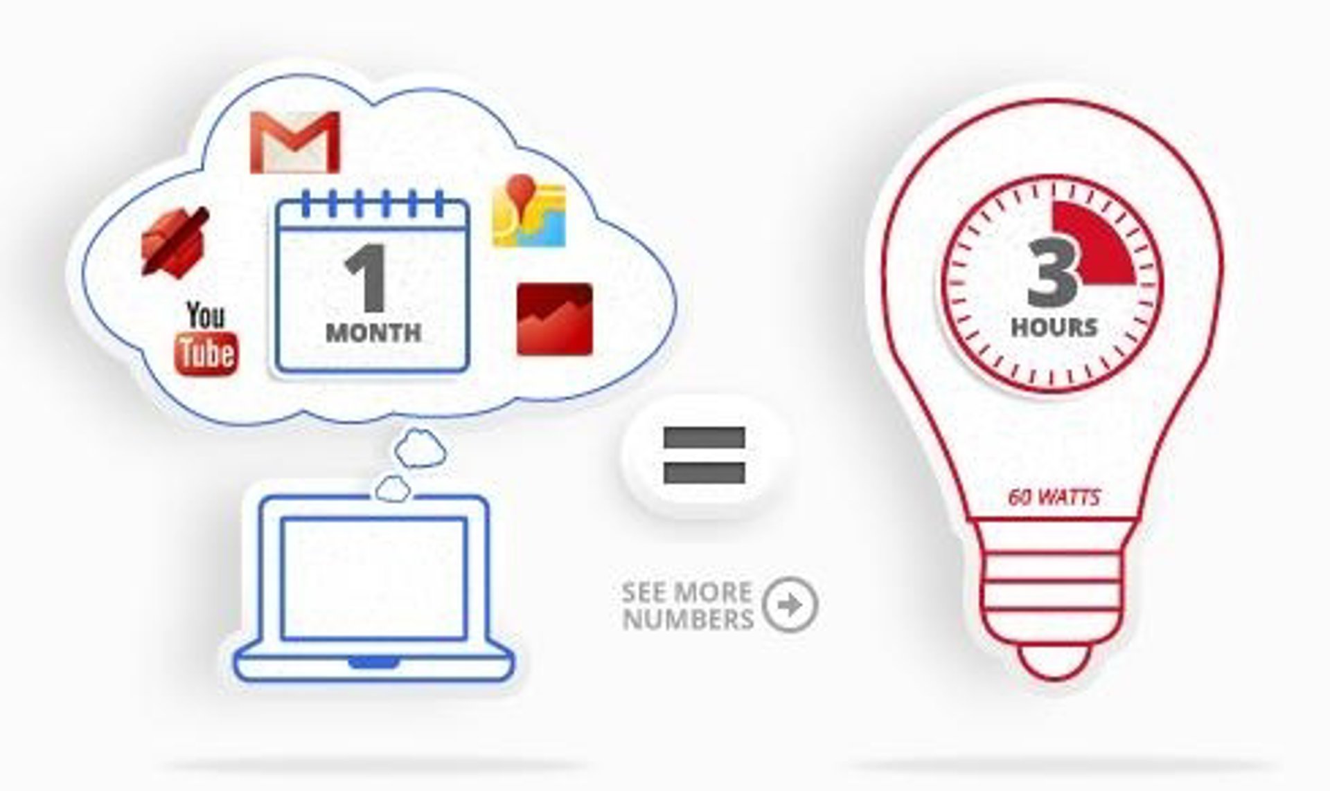 El sitio muestra que durante 2010, por ejemplo, cada usuario de Gmail consumió 2.2 kWh y generó 1.2 kg de dióxido de carbono. También explica que para administrar sus servicios, entre los que se incluyen por ejemplo Google+, Gmail, YouTube, sus servidores usan menos energía por usuario "que una luz encendida durante 3 horas".