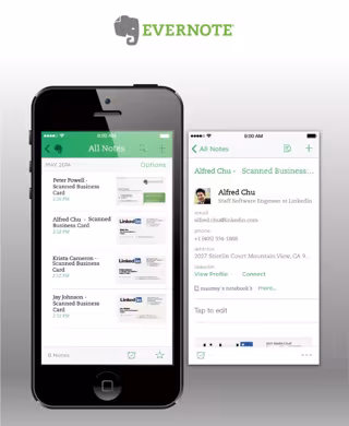 LinkedIn ha anunciado en su blog una ampliación de su alianza con Evernote con la intención de llegar a más usuarios. Con este nuevo acuerdo los usuarios podrán escanear sus tarjetas de negocios mediante la aplicación móvil de Evernote para después mantenerse conectados con sus contactos en LinkedIn.