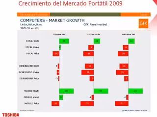 La segmentación por marcas ha mostrado como Toshiba ha ido escalando posiciones gracias al 39,2% de cuota de mercado que alcanzó en diciembre de 2009, situándola en el cómputo anual con un 23,5%, la misma cifra que HP. Para Romero el objetivo ahora es introducir su producto con más fuerza en "sectores clave" comno las PYMES, administración pública y educación, considerando que el plan de 'Educación 2.0' del Gobierno "será clave".