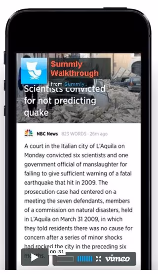 La aplicación de Summly permite hojear y compartir noticias rápidamente con algunos gestos muy intuitivos. Su fundador, Nick D'Aloisio, sólo tiene 17 años y su empresa ya ha recaudado 1,5 millones de dólares (1,1 millones de euros).