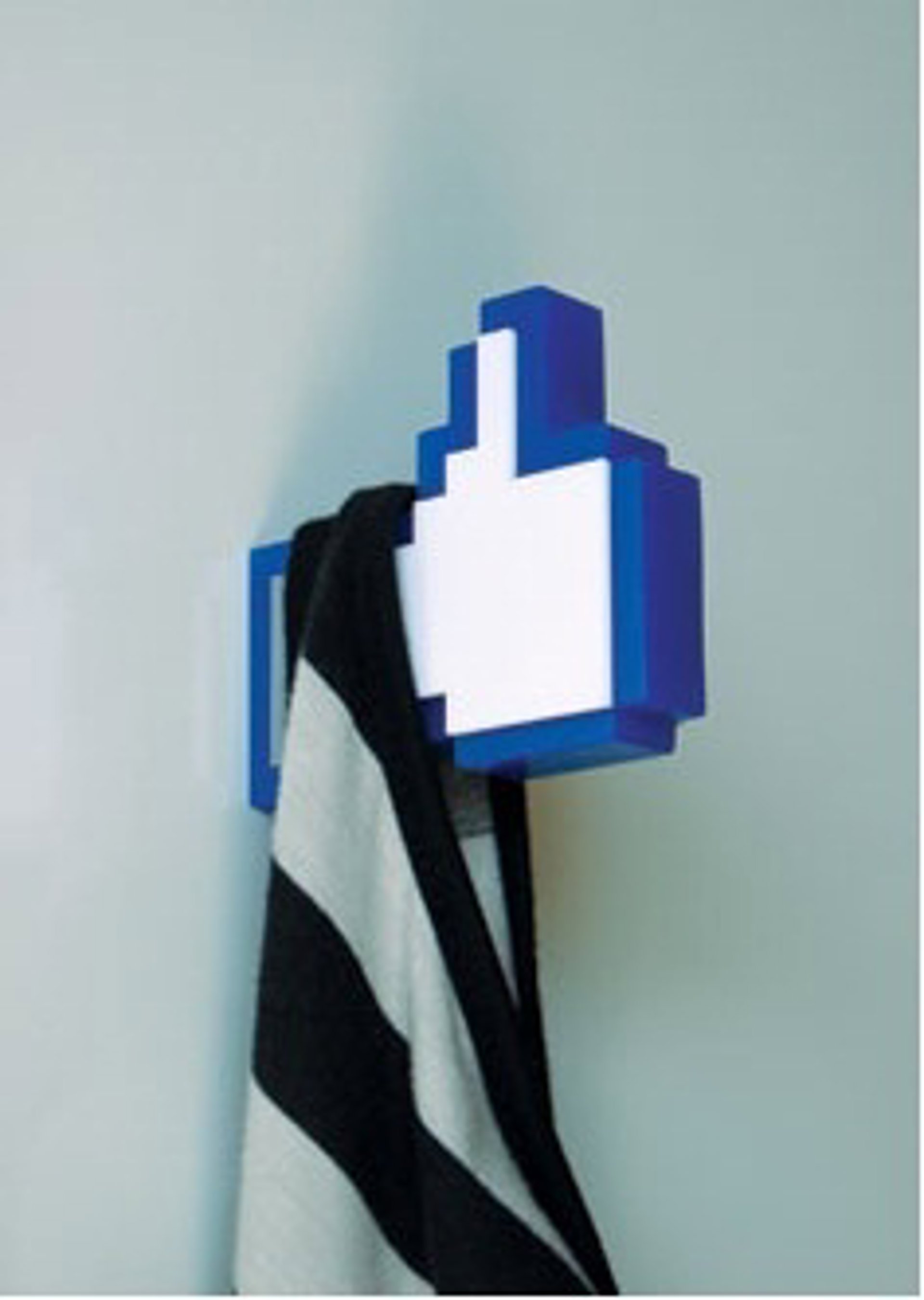 La compañía Meninos vende a través de Internet el perchero 'Me gusta', una representación de la famosa mano que acompaña al botón en la red social. "Móntalo en la pared y luego utilízalo para colgar las cosas que te gustan", aseguran. Además de ser un perchero puede servir como adorno en cualquier otro lado de la casa e incluso darle la vuelta y conventirlo en el botón 'No me gusta', que no existe en la red social.