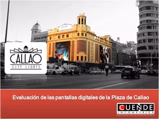 Callao quiere convertirse en la Times Square de Madrid. ¿Y qué hay en la plaza de Nueva York? Muchas pantallas y muchísima publicidad. Del mismo modo, las pantallas gigantes de la Plaza de Callao (250 m2 en total) han convertido el enclave madrileño en uno de sus mayores espacios culturales y de ocio. Un 53 por ciento de los ciudadanos se siente satisfecho con el cambio y sus responsables aseguran que la efectividad como enclave publicitario es muy alta.