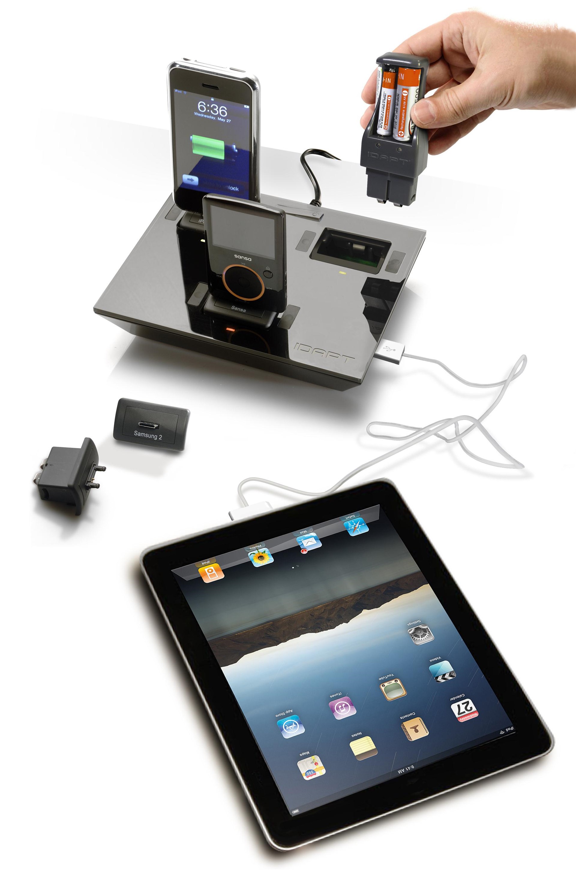 El último modelo de la estación de carga IDAPT no sólo ha incorporado una mayor variedad de clavijas para ampliar su compatibilidad hasta los 4.000 dispositivos. También suma un puerto USB para ampliar el número de 'gadgets' en recarga a la vez e impedir que se quede alguno fuera.